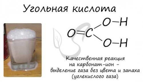 угольной кислоты: средние — карбонаты (при избытке основания), кислые — гидрокарбонаты (при избытке кислотного