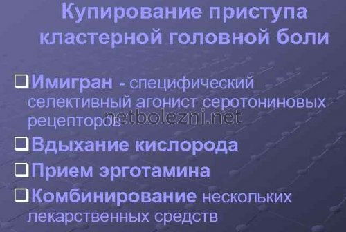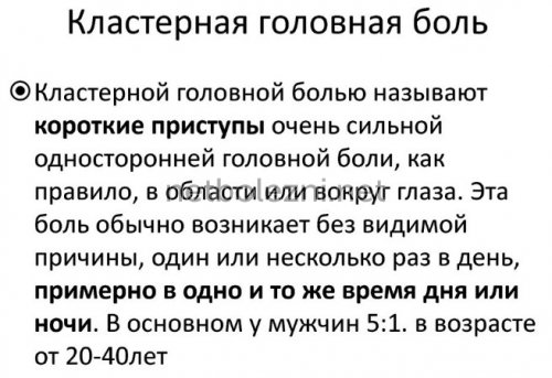 кластерную головную боль. Лечение, назначенное врачом своевременно, существенно облегчает ее и продолжается более
