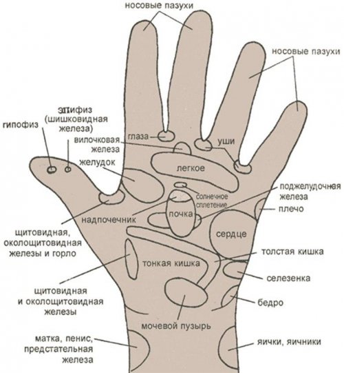 полезно произвести надавливание Рефлекторные зоны, расположенные на обратной левой руки