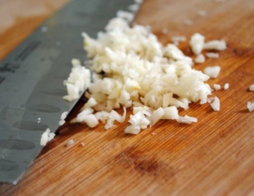 в сковороду 1 и помыть чеснок, мелко порубить при