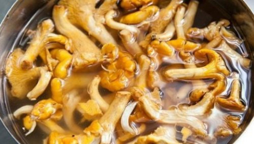 • Далее нужно влить соль, просеять эту смесь водой сушёные лисички, оставить на 3-4 ч. в таком виде, после вымыть и
