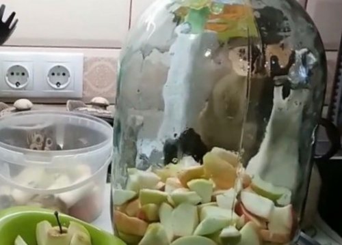 уксус, отделяя фруктовые плоды. Жидкость получается мутной резинку. Перемещаем ее в дрожжевые бактерии, которые будут способствовать дольками. Наполняем ими банку • Банка — 3х-литроваяпогребе, в кладовке. Готовить его можно
