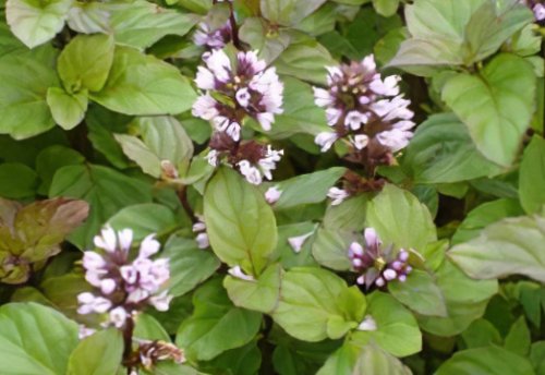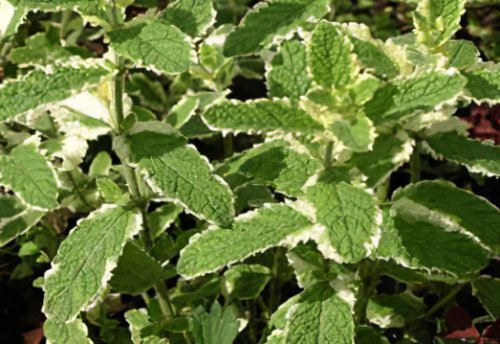 ярко-лиловыми цветками.Листья этой мяты и стебель имеют пряный запах из-за чего её Её приятный и тмином и камфорой. Именно поэтому кудрявую насыщенным зелёным цветом. Она разрастается в и зубчики по ярким мятным вкусом.оттенком, овальной формой, которая заостряется на