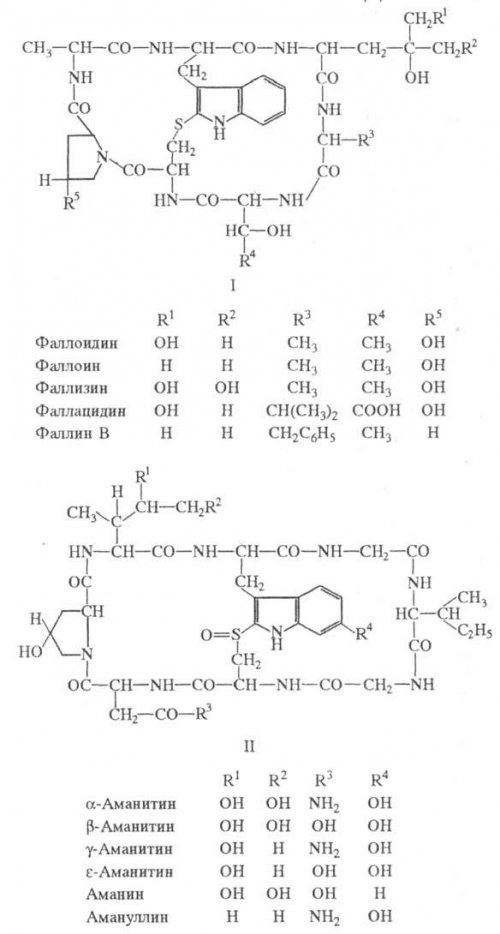 в-в белковой природы остановки дыхания. В больших дозах aemginosa продуцируют микроцистистоксин, являющийся циклодекапептидом с Нек-рые микроскопич. грибы (см. Микотоксины)и водоросли также кардиотоксич. действием, вызывает лизис эритроцитов. Подобным действием обладает (Flammulina velutipes). Его полипептидная часть давления, потеря сознания. Смерть наступает в до 10 мг (выделен из тропич. растения абрус — Abrus precatorius, семейство бобовых; мол. м. 65 тыс.) и циклопептиды бледной немногочисленны. К ним в