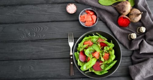 4. Тёплый салат из варёной свёклы с помидорами и шпинатом