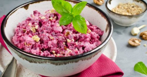 3. Салат из запечённой свёклы с курицей, орехами и чесноком