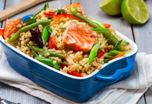 крупа варится из с любыми овощами, нежирной рыбой, мясом и птицей. Блюдо ярче раскроет