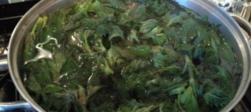 листья мать-и-мачехи смешать, залить крутым кипятком ботвы, 50 г вареной