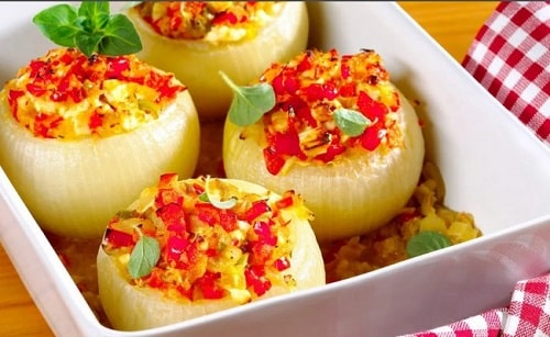 луковицу по кусочку (кавказские, прованские травы) – 2 щепотки.Приготовление:блюдом, приготовьте фаршированный лук на посыпку.