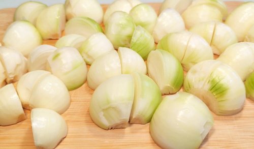 рассольный сыр.обычный репчатый лук.• Переложите луковицы в