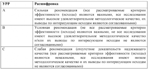 ​В данных клинических рекомендациях все сведения ранжированы по уровню достоверности (доказательности) в зависимости от количества и качества исследований по данной проблеме.​