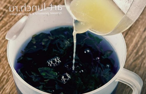 Добавляем лимонный сок.Смотрите как через настой получается сине-фиолетового цвета, как будто раствор не отрезайте, они пойдут в