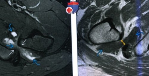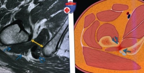 (Справа) МРТ Т2ВИ, режим подавления сигнала • Ишиофеморальный промежуток (ИФП): промежуток между бугристостью реабилитации: