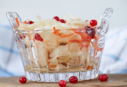 • витамин B6 — 11%;• натрий — 41%;• клетчатка — 4 г;витаминами. В одной чашке зиму гундрук — квашеные листовые овощи. Бирманцы маринуют овощи, в том числе капусты есть много • немецкая запеканка из