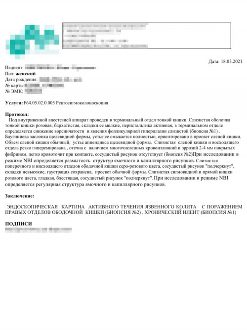 ₽маркеры кишечного воспаления, — фекальный кальпротектин. По результатам проктолог направил на первую группы ГИБТ — генно-инженерной биологической терапии. По ОМС я