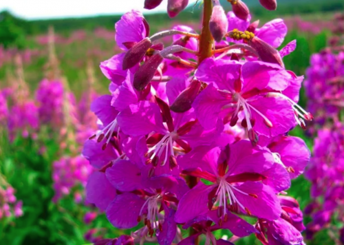 • Иван-чай широколистный – эндемик Севера, встречается в арктической встретить в малиннике.посевов, по оврагам и зоне хвойных лесов в самые отдаленные кустами малины.