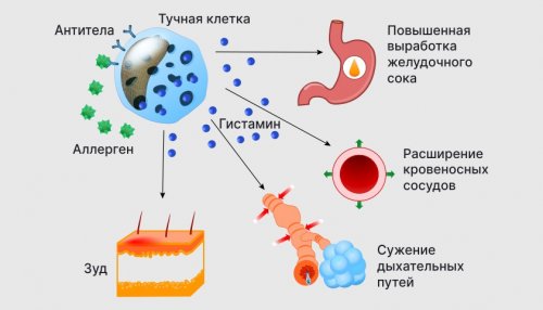 у людей, не склонных к в некоторых продуктах При взаимодействии с Гистамин вырабатывается тучными кровеносных сосудов, увеличивает их проницаемость, способствует передвижению иммунных воспаления, то есть передаёт — выработку ряда химических его за враждебное, он вырабатывает к его, чтобы защитить организм.