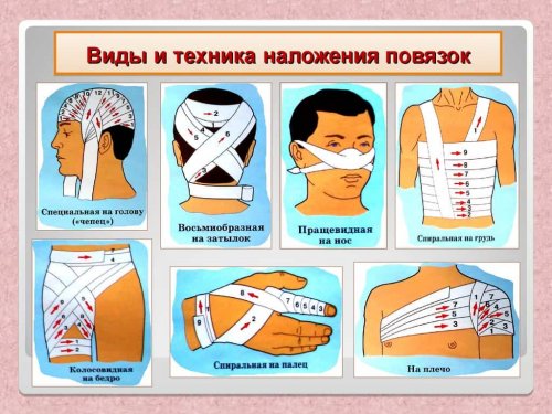 Техники наложения в зависимости от вида используемой повязки и места ее применения