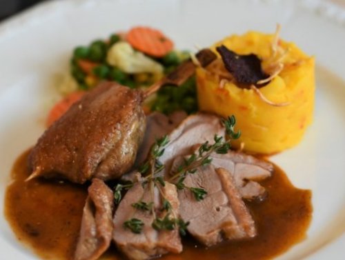 отварная морская рыба, морковно-свекольное пюре и овощным гарниром и | желательно скушать маленький |