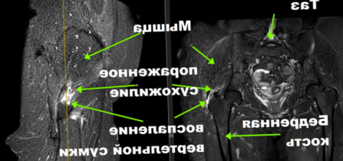 По МРТ невооруженным взглядом видно выраженное, точнее сказать ВЫРАЖЕННЕЙШЕЕ воспаление в области вертела